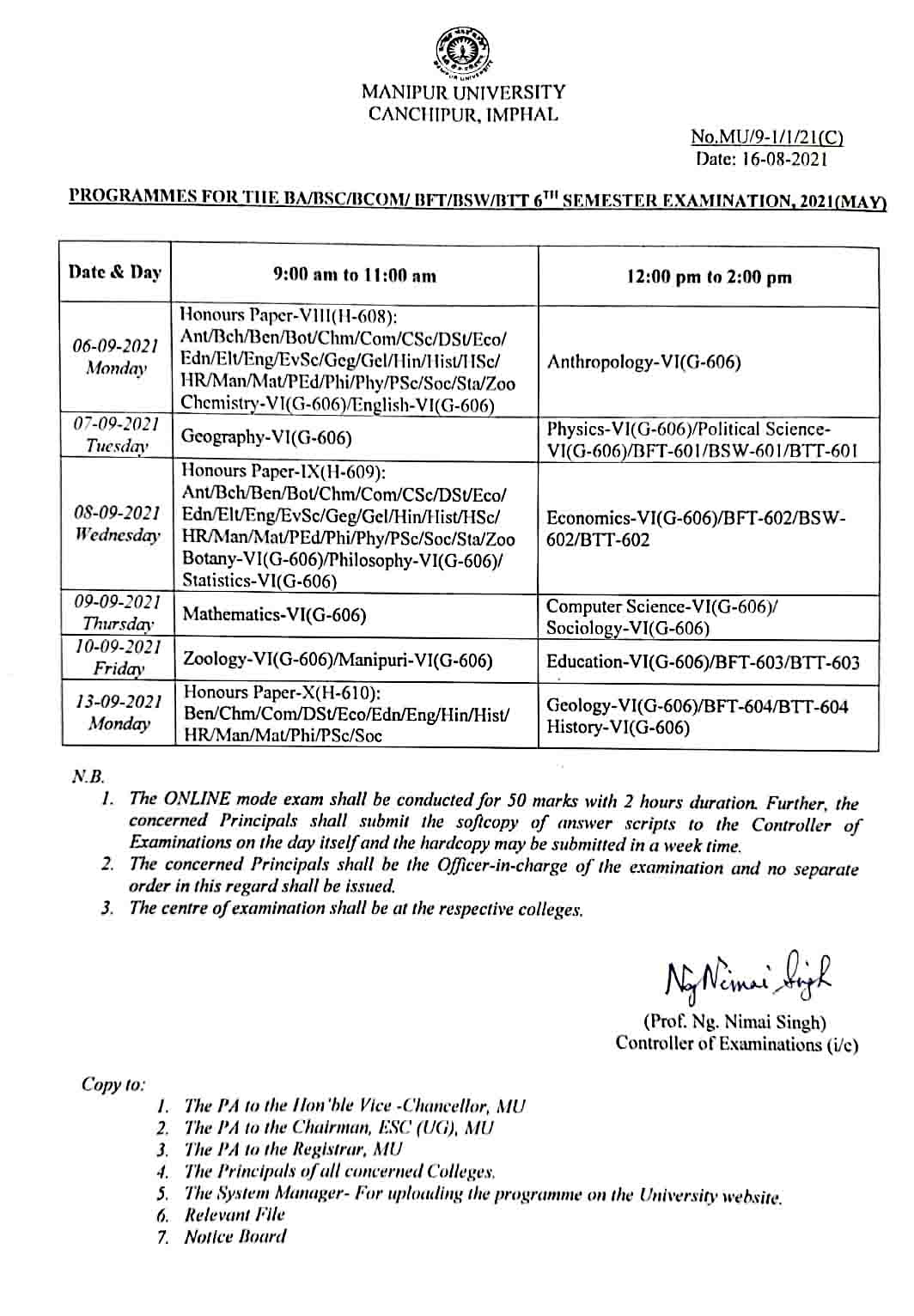 Examination Schedules: > Programme – 1st & 7th Semester Examination 2025 (Nov)(NEP) > Programme – 5th Semester Examination 2025 (Nov)(NEP) > Programme – 3rd Semester Examination 2025 (Nov)(NEP) > Programme for BA/BSc/BPES-4th Semester Exam, 2025 (NEP) (MAY) > Programmes for BA/BSc/BPES-2nd Semester 2025 (May) (NEP) > Programmes for BA/BSc-2nd Semester Exam, 2024 (May) (NEP) > Programmes for BA/BSc-1st (NEP)/2nd (Old/Back)/4th (Old/Back)/6th (Old) Semester Examinations, 2023 (Nov) & 2024 (May). > Programmes for BA/BSc-1st/3rd/5th Semester Examinations, 2022 (Nov). > Programmes for BA/BSc-2nd/4th/5th Semester Examinations, 2022 (May). > BA/BSc-1st/3rd/5th Semester Examinations 2021 (Dec) > Scheduled for BA/BSc-1st/3rd/5th Semester Internal Assessment Examinations, 2021 (Dec) > Programmes for BA/BSc 6th Semester Examination, 2021 (May)