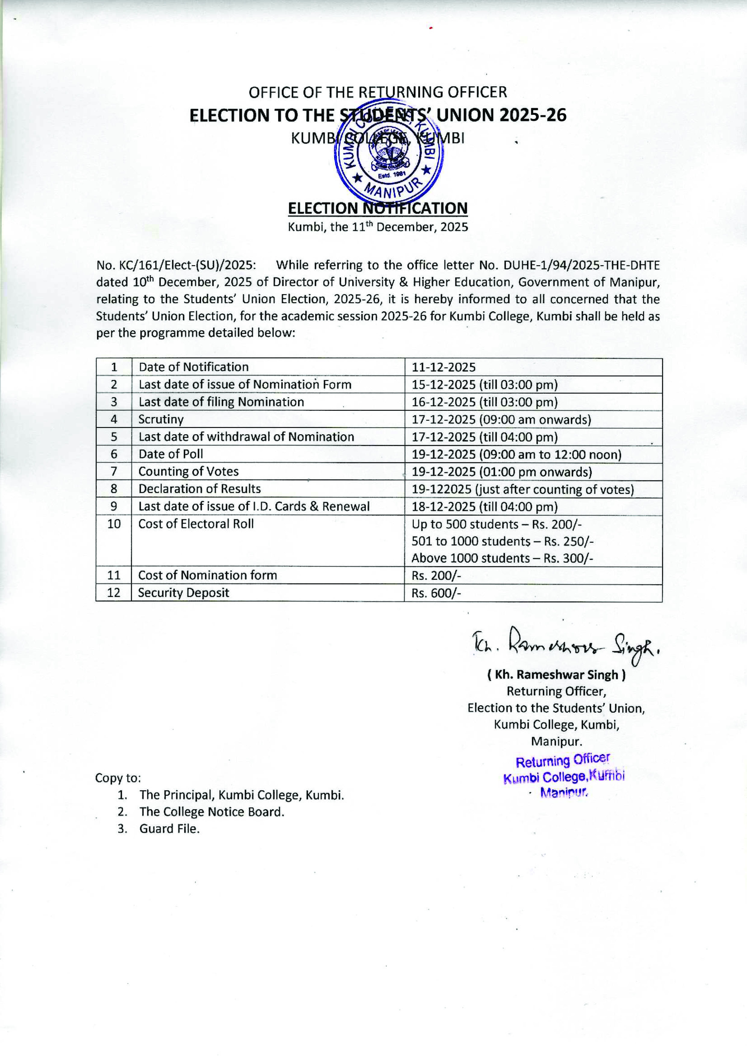 > Notification for Students’ Union Election 2025-26